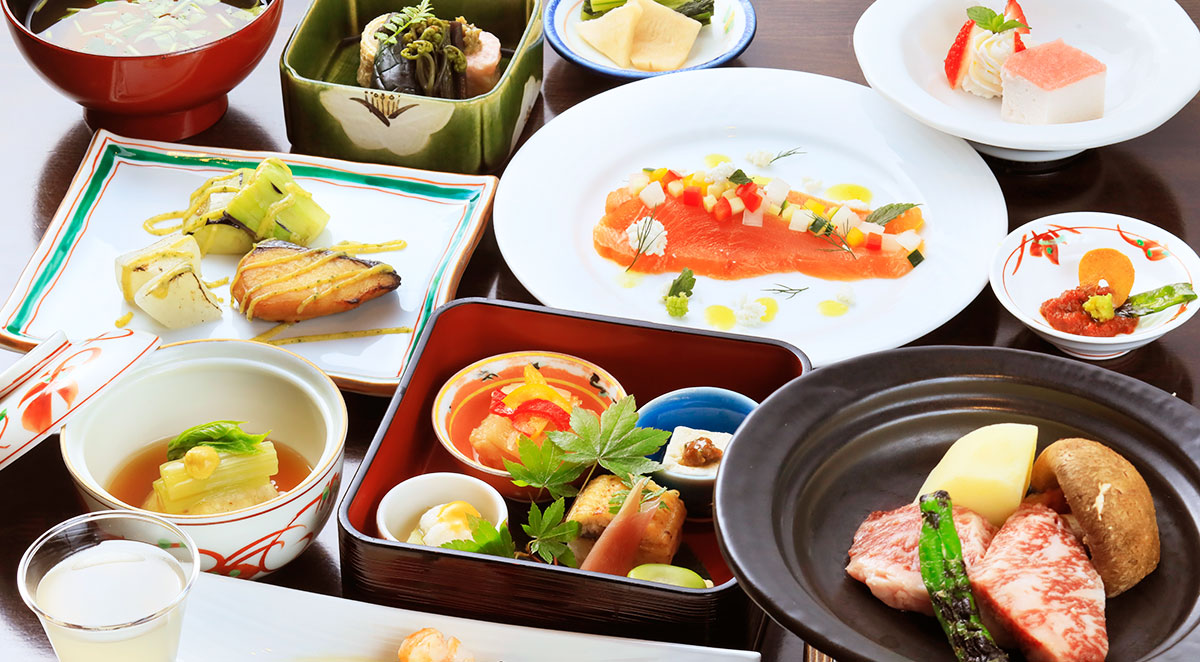 こだわりの地元素材、旬のおいしい素材にこだわったホテル自慢の和風会席料理。